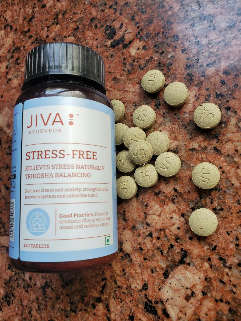 The Jiva Stress-Free tablet does just what the name suggests and aims at relieving symptoms of anxiety and stress. It is specially formulated to overcome the ill effects of stress while providing the physical and mental health. This formulation of special herbs enables the body to reserve and sustain vital energy throughout the day while promoting sound, restful sleep at night. All the herbs are collected, finely sorted and then ground into powder, which is then made into small tablets. We have chosen quality ingredients from organic environs for you and sorted them to ensure unmatched efficiency. We employ processes that are primed to give you a balanced product without contamination or loss of potency.
